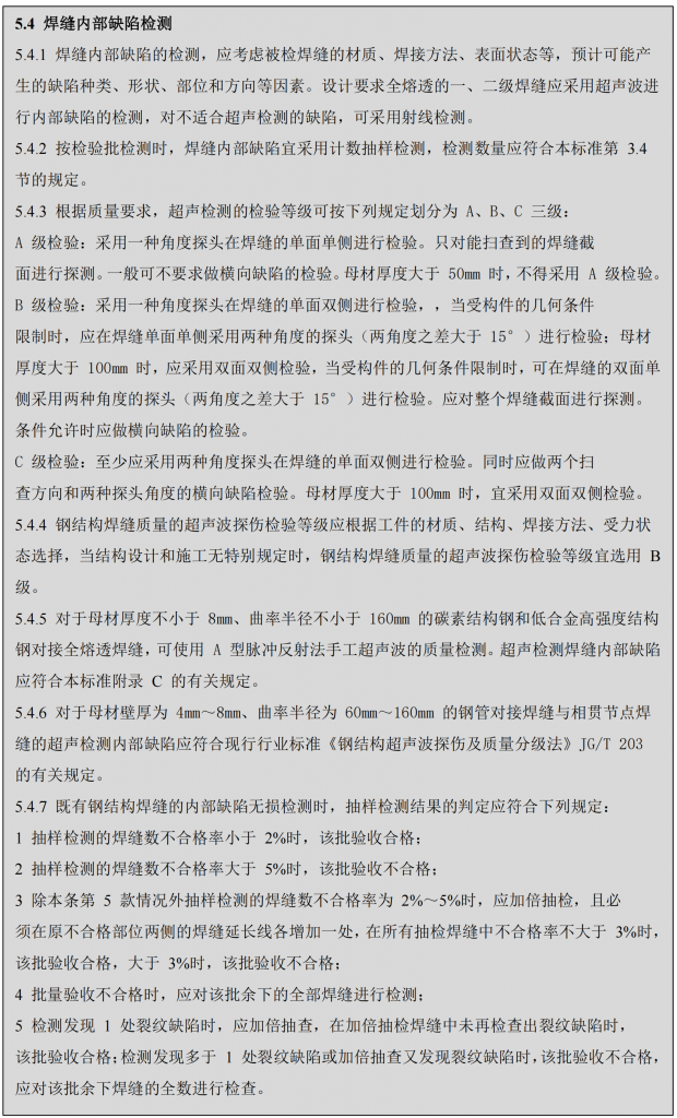 《鋼結構現場檢測技術標準》T/CECS1009-2022中與焊接檢測相關的部分內容。